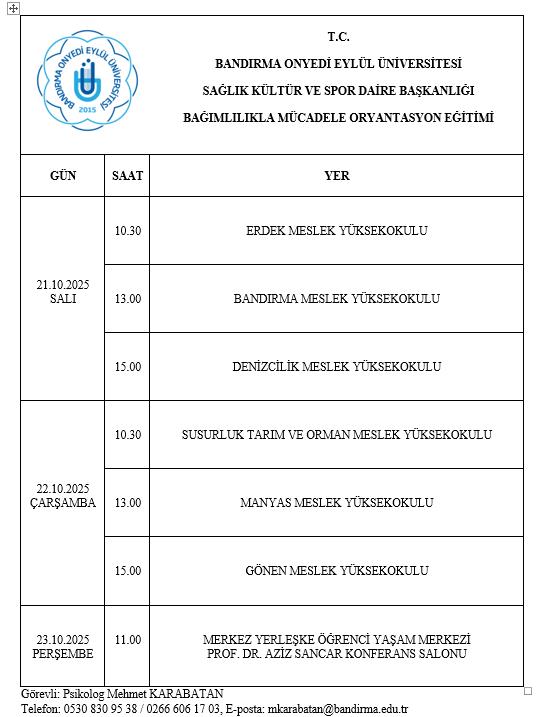 According to the letter dated August 19, 2025, and numbered E-75850160-199-53504, and attached to the appendix, the Council of Higher Education will provide "Addiction Orientation Training" for first-year students at our university. The location and time schedule for this activity are attached to our letter.