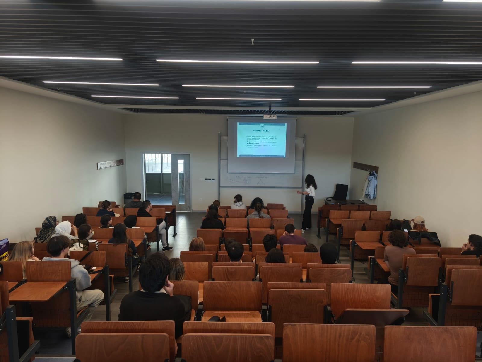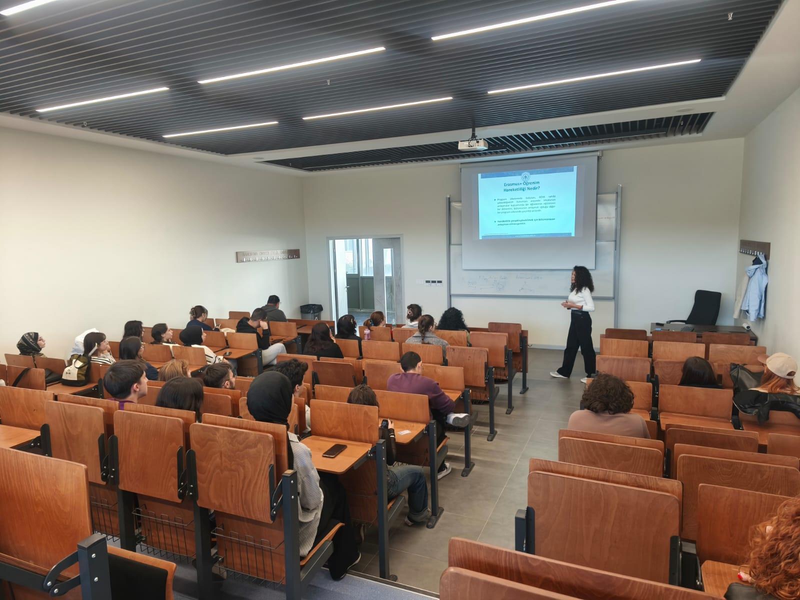 Etkinlikte, Erasmus Değişim Programı Koordinatörlüğü yetkilileri tarafından öğrencilere Erasmus+ programının ne olduğu, öğrenim ve staj hareketliliği türleri hakkında detaylı bilgiler sunuldu