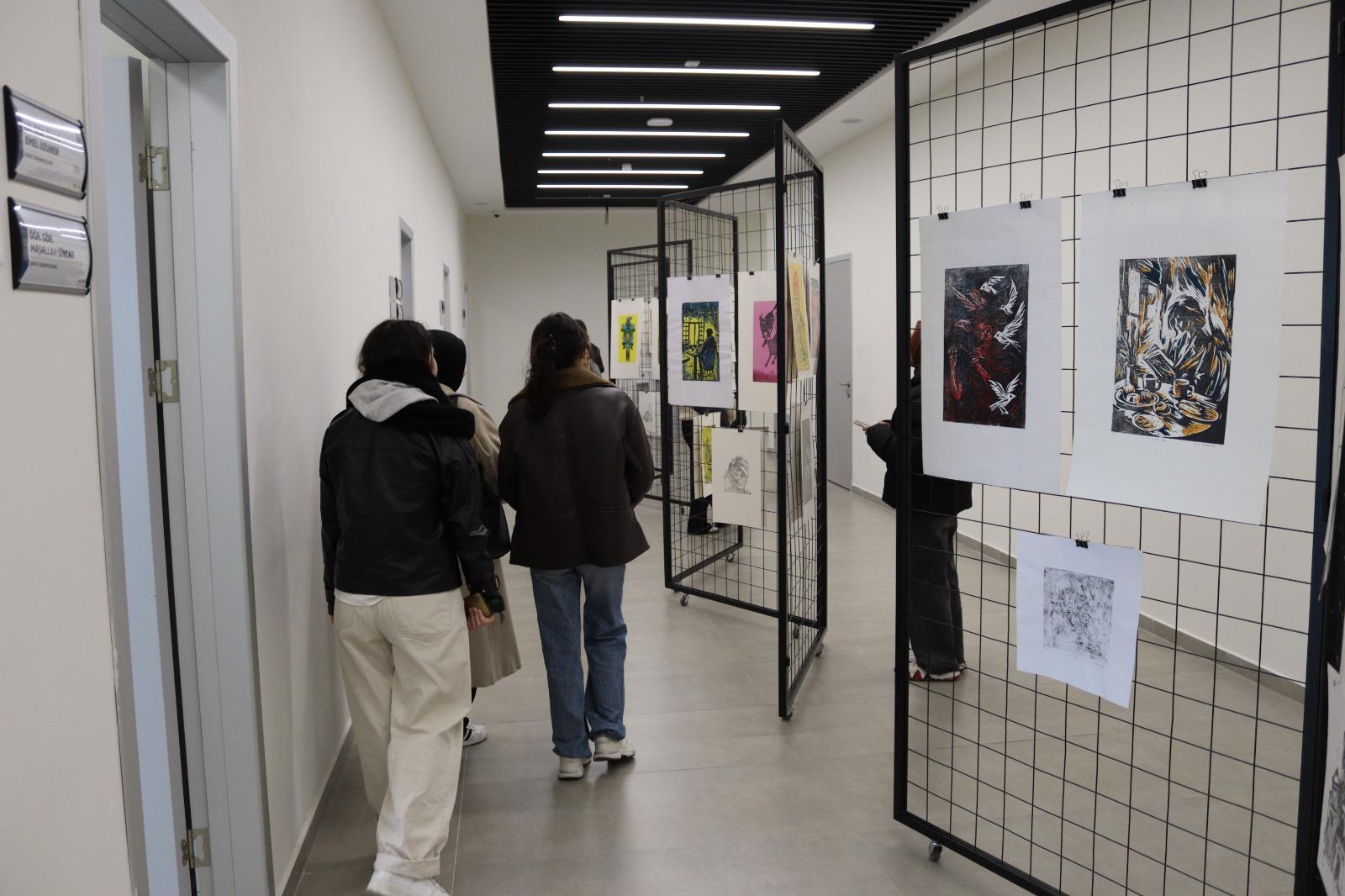 Eğitim sürecinin kolektif bir sanatsal paylaşıma dönüştüğü “Özgün Baskı Sergisi”, ay sonuna kadar fakültenin koridor sergi alanında izleyicilere ve sanatseverlere açık olacak.