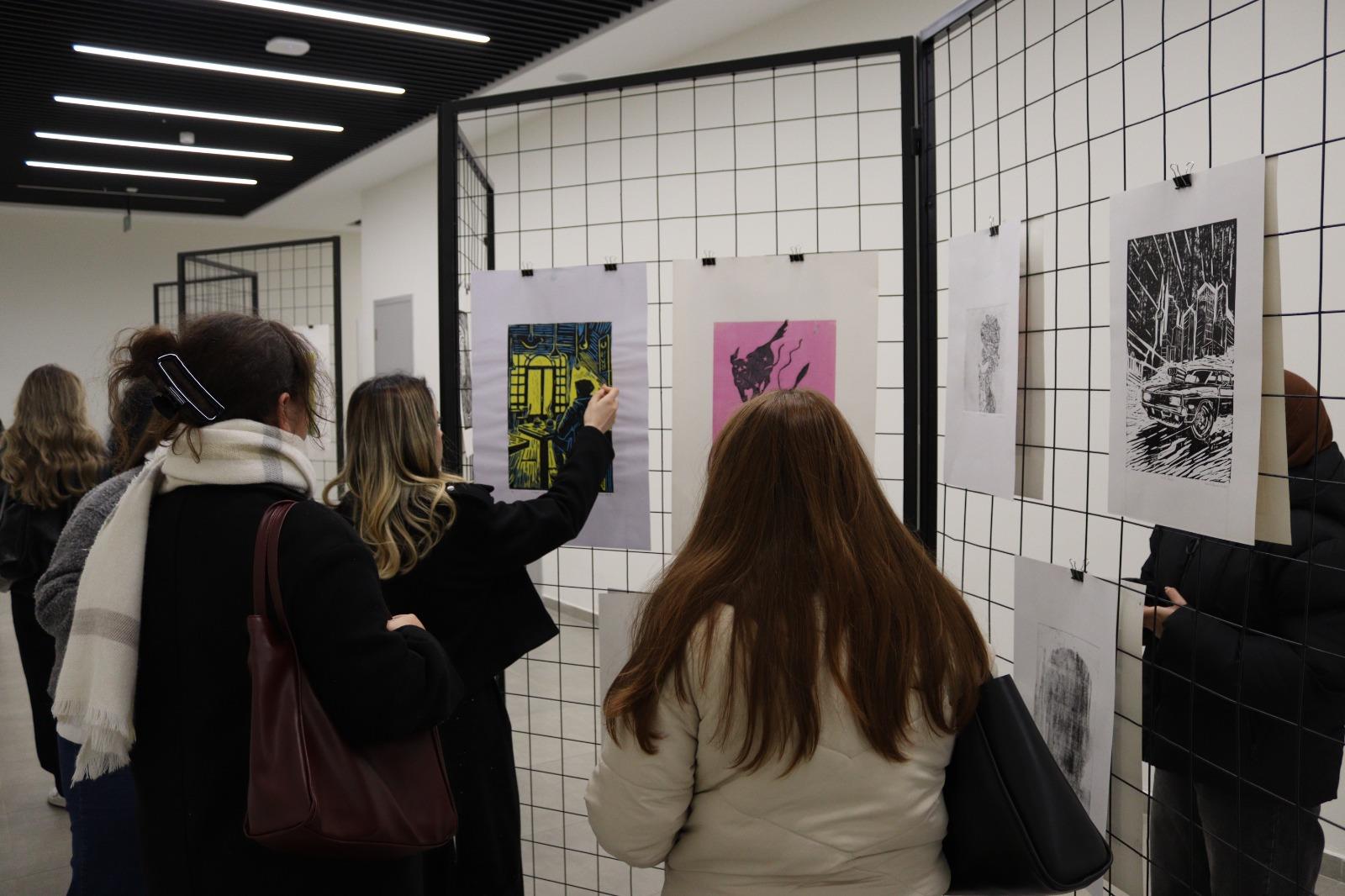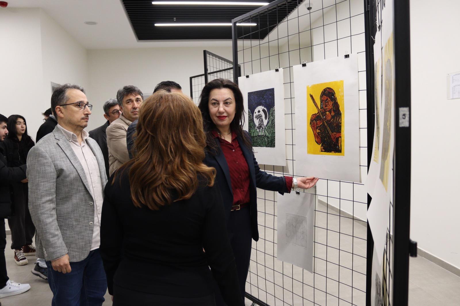Eğitim sürecinin kolektif bir sanatsal paylaşıma dönüştüğü “Özgün Baskı Sergisi”, ay sonuna kadar fakültenin koridor sergi alanında izleyicilere ve sanatseverlere açık olacak.